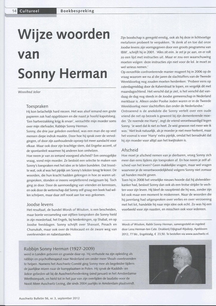 Boekbespreking van Words of Wisdom, Auschwitz Bulletin (september 2012)