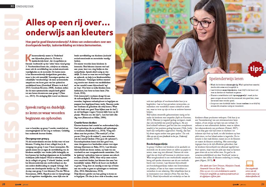 Overzichtsartikel over kleuteronderwijs, Didactief (juni 2017)