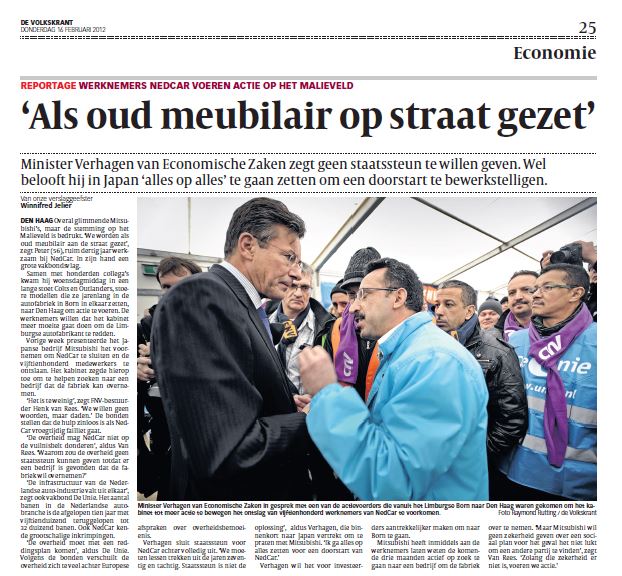 Nieuwsreportage over NedCar-protest, De Volkskrant (februari 2012)