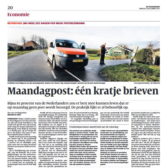 Nieuwsreportage over postbezorging, De Volkskrant (december 2011)